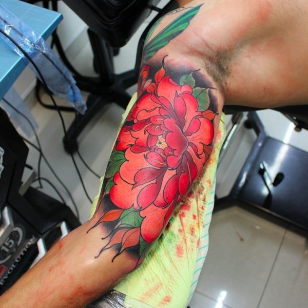 几张红色的牡丹纹身图案欣赏