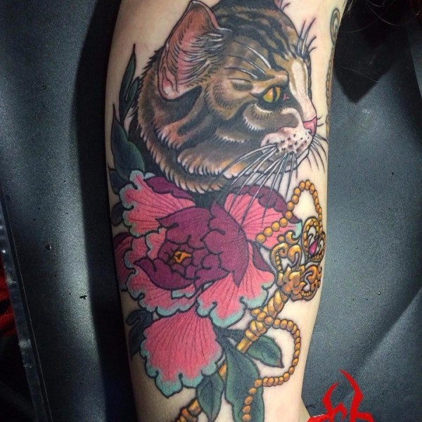 日式老传统牡丹花臂纹身作品图案9张