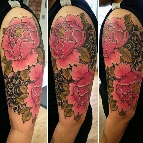 漂亮的牡丹花朵纹身图案