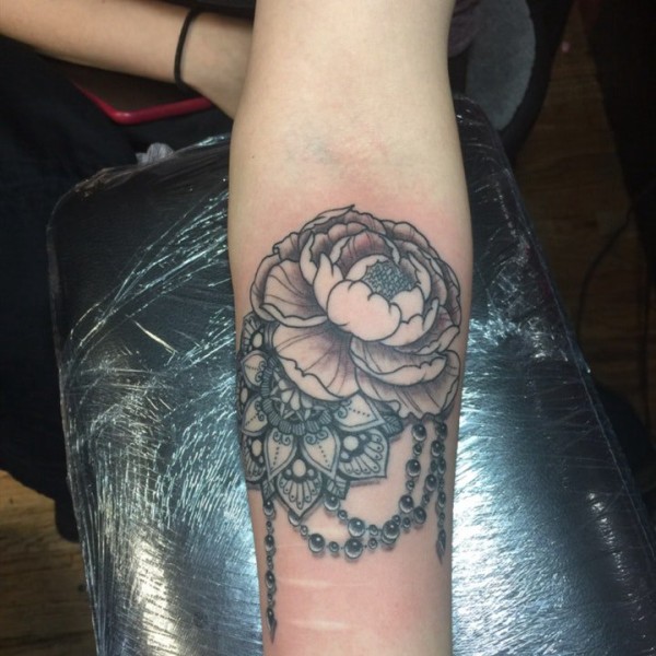 漂亮的牡丹花朵纹身图案