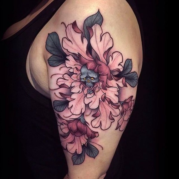 花朵纹身图案 美丽且大方的牡丹玫瑰等花朵纹身图案
