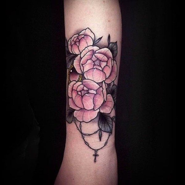 漂亮的牡丹花朵纹身图案