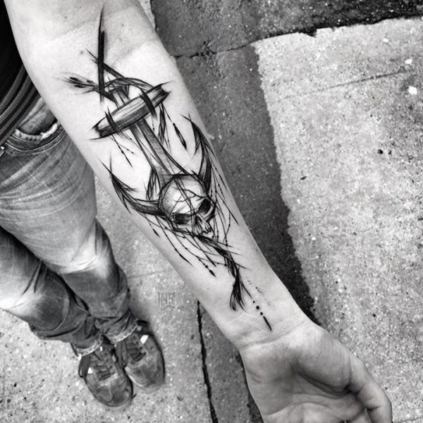 黑灰手臂点线纹身 别有一番风味的手臂点线黑灰纹身图片