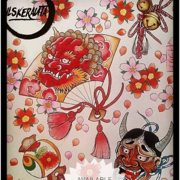 能面万媚纹身手稿_52张日式能剧面具纹身手稿图案素材欣赏