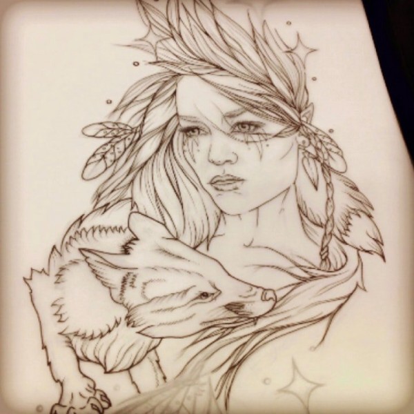 一组16张狐狸纹身手稿素材图案