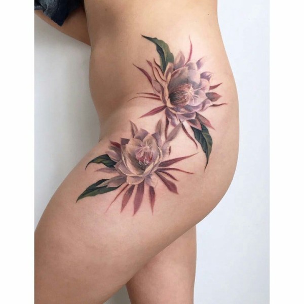 逼真的超现实主义花纹身图案来自纹身师莫拉莱斯