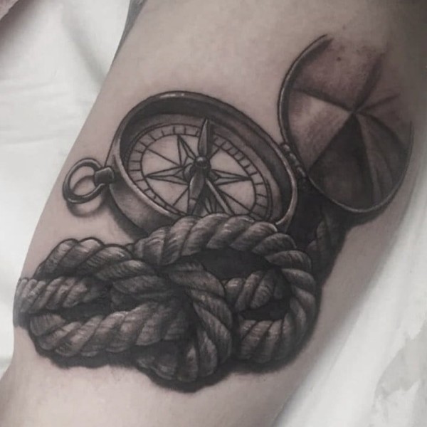 纹身指南针 水彩与线条结合的指南针纹身图案