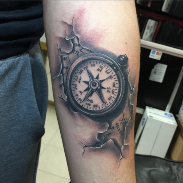 小臂和小腿上的9张漂亮指南针纹身图案