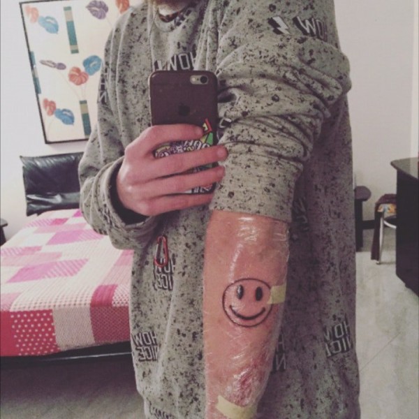 超级偶像权志龙手部虎口笑脸纹身