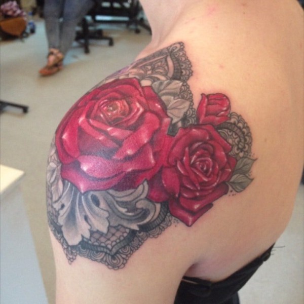 女性肩膀上多款漂亮的花朵纹身图案