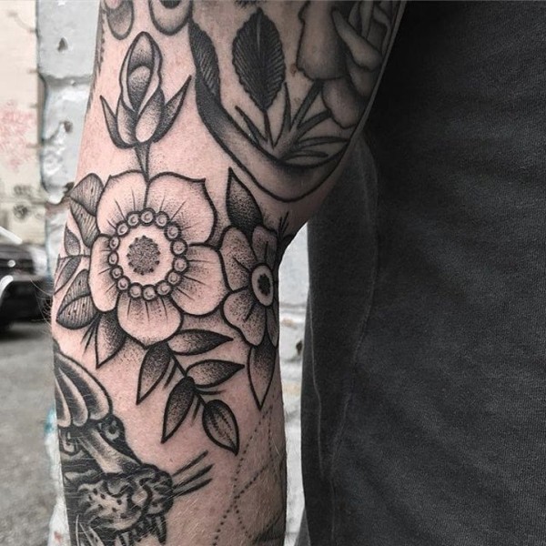 欧美玫瑰纹身 男生手臂上花朵纹身图片