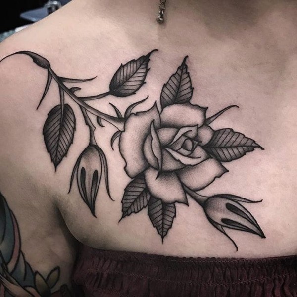 花朵纹身图案 漂亮精致的玫瑰花与蝴蝶纹身花朵图案