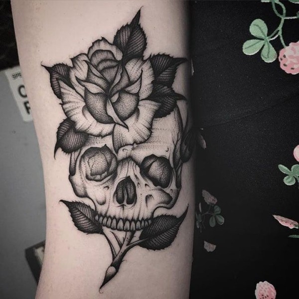 欧美玫瑰纹身 男生手臂上花朵纹身图片