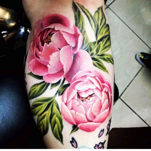 彩色花朵纹身 唯美妖艳的彩色花卉包臂纹身图案