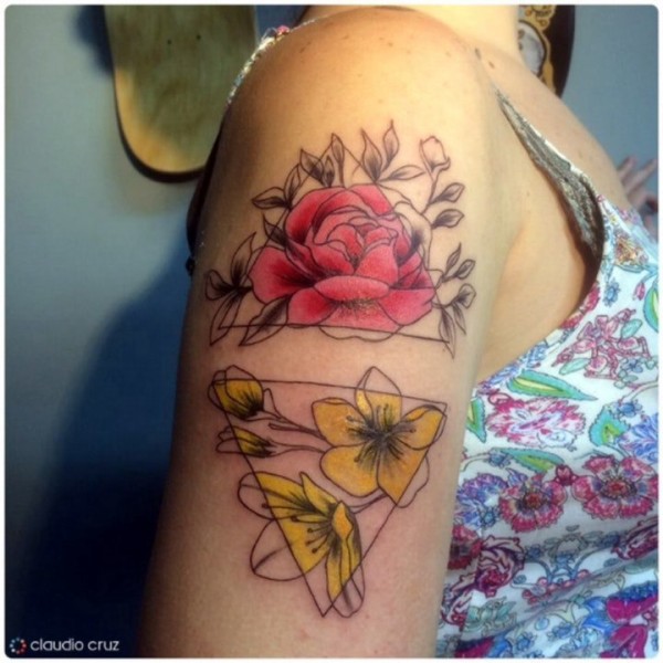 彩色花朵纹身 唯美妖艳的彩色花卉包臂纹身图案
