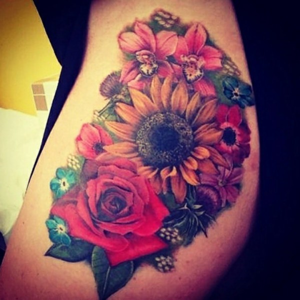 向日葵纹身图案 绽放中的或黑灰或彩绘的向日葵纹身图案