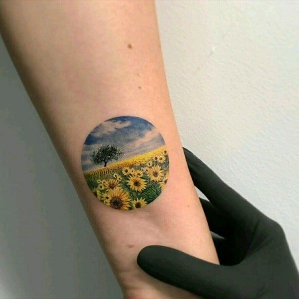 适合女生的一组很漂亮的小清新向日葵纹身图