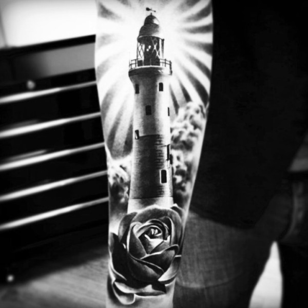纹身灯塔 男生手臂上灯塔纹身图案