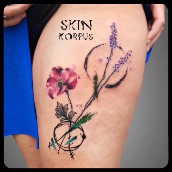清新花朵腿部纹身图案图片_植物纹身图案大全_纹身图吧
