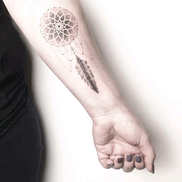 31款几何纹身点刺技巧印第安风格纹身捕梦网纹身图