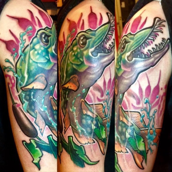 百乐动物纹身 男生手臂上树叶和鳄鱼纹身图片