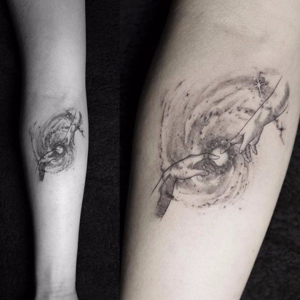 触碰手指的手势纹身作品图案欣赏