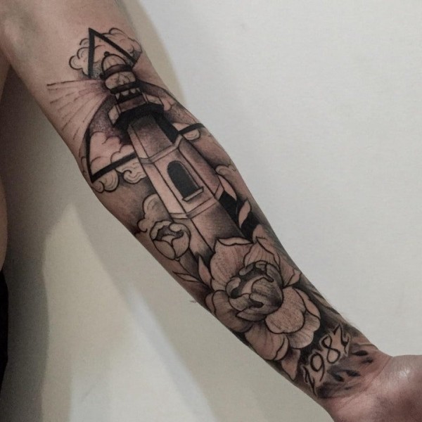灯塔纹身 9款暗夜里若隐若现的灯塔纹身图案