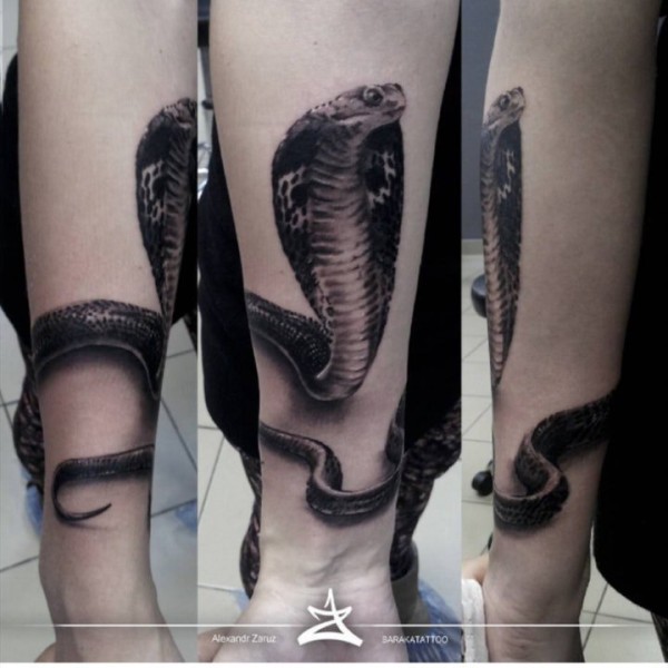 黑色和白色手臂眼镜蛇纹身动物几何点刺纹身图案