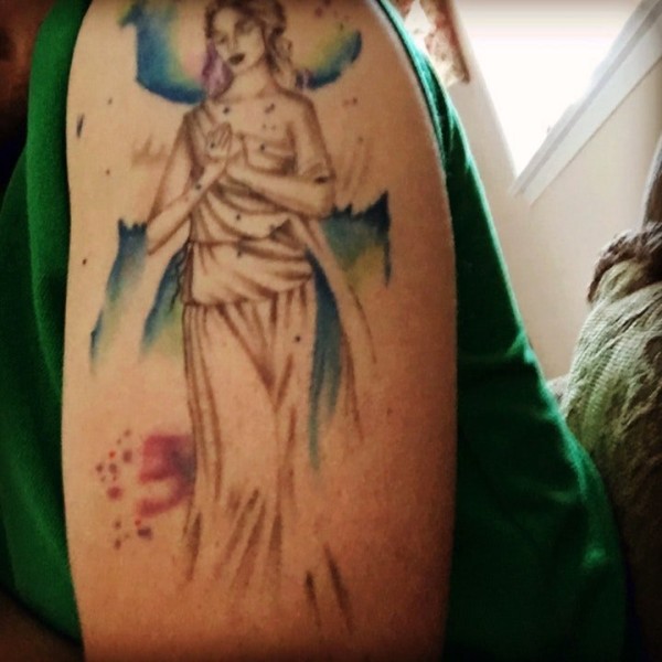 腿部黑灰天使纹身图案_天使纹身图案大全_纹身图吧