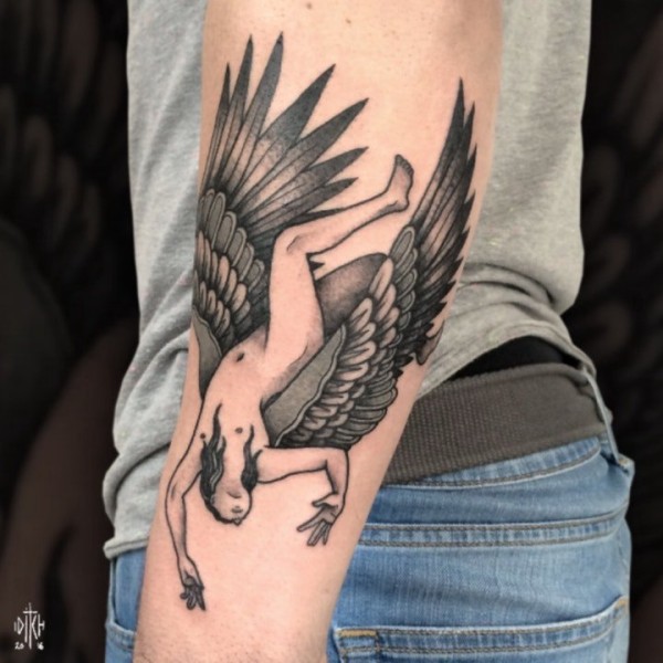 天使翅膀纹身图案 10款带翅膀的天使黑灰纹身图案