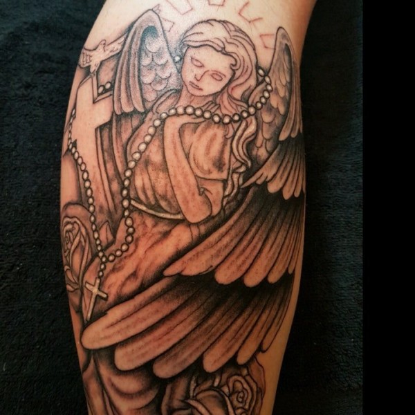 腿部黑灰天使纹身图案_天使纹身图案大全_纹身图吧