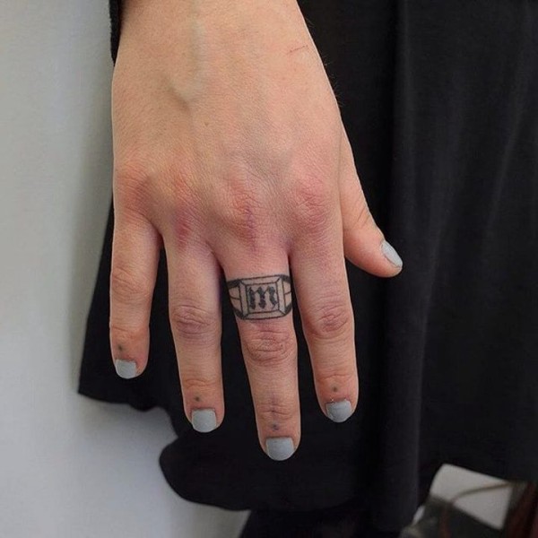 戒指纹身图案 10张黑灰色调的手指上小清新戒指纹身图案