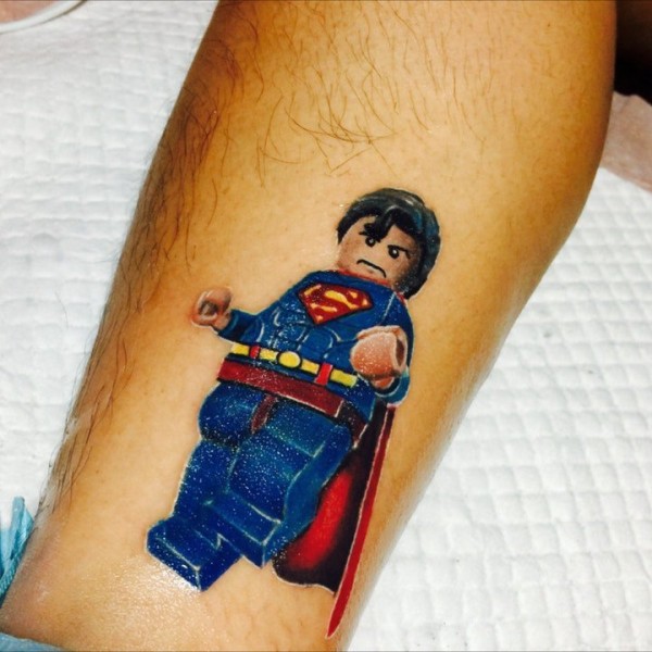 个性超人纹身 男生小腿上彩色的超人纹身图片