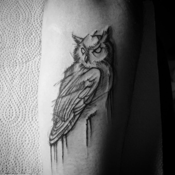 胳膊一张创意猫头鹰文身作品