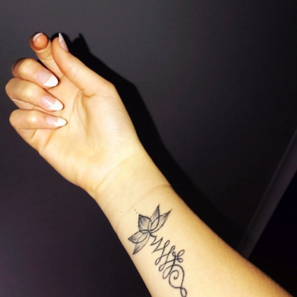 简单时尚的莲花线条纹身图案
