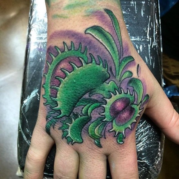 手部个性盛开莲花纹身图片_植物纹身图案大全_纹身图吧