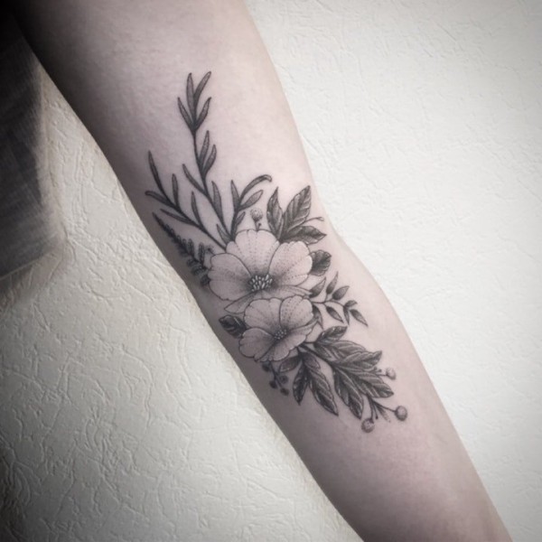 后肩唯美花藤英文图案图片_植物纹身图案大全_纹身图吧