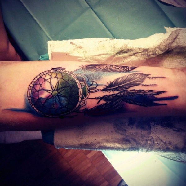 适合女孩子的小清新捕梦网彩色纹身图案