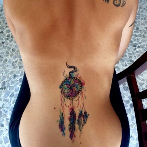 适合女孩子的小清新捕梦网彩色纹身图案