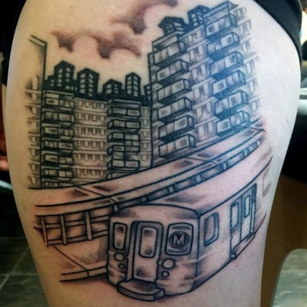 创意纹身图片 9张飞速行驶的地铁纹身图案