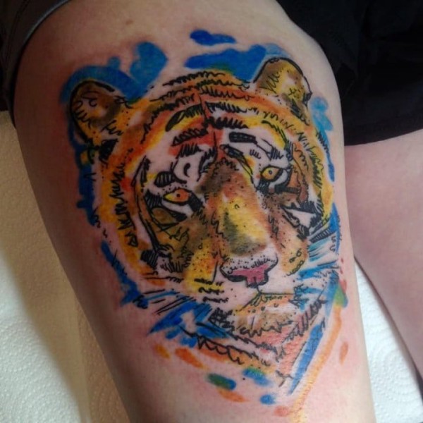 男性们都喜欢这样帅气的凶猛的老虎纹身图案