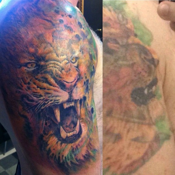 狮头虎头纹身 9组逼真的手臂包臂写实虎头和狮子头纹身图案