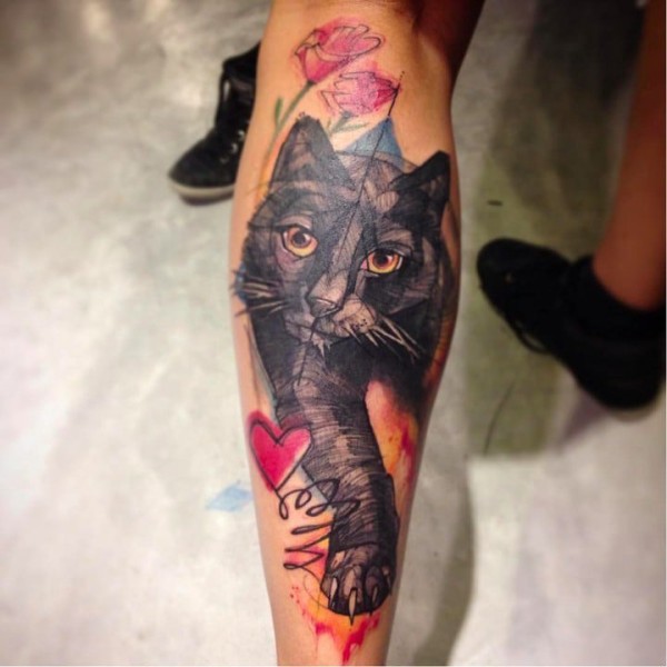 猫的纹身图案 形态各异或彩绘或黑灰风格猫的纹身图案