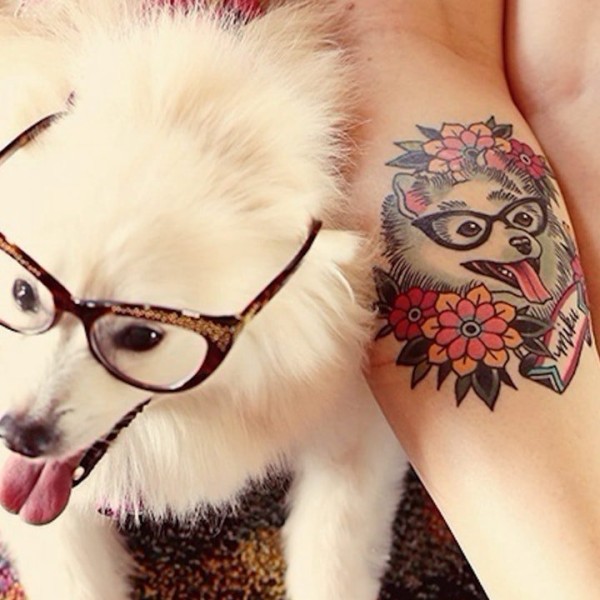 潮流纹身-色彩可爱的小猫小狗手臂纹身图片