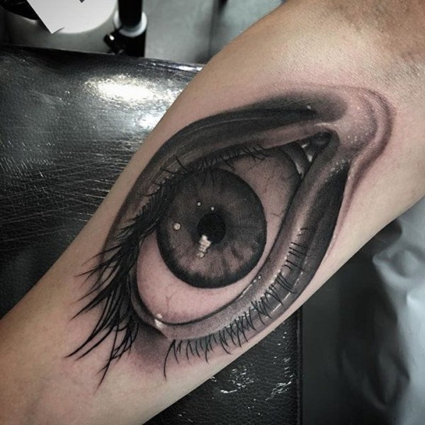 纹身眼睛纹身图案 男性手臂上穿透灵魂的黑色素描纹身眼睛纹身图案