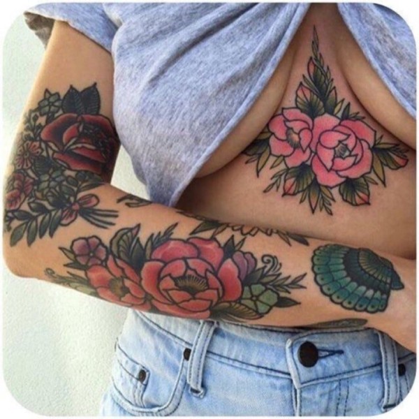娇艳玫瑰手臂纹身_玫瑰花纹身图案大全_纹身图吧