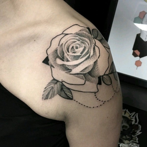 复古骷髅玫瑰肩部纹身_玫瑰花纹身图案大全_纹身图吧