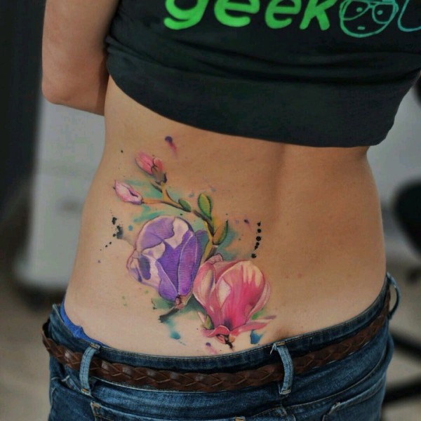 彩色花朵纹身图案 漂亮且唯美的彩色花朵纹身图案