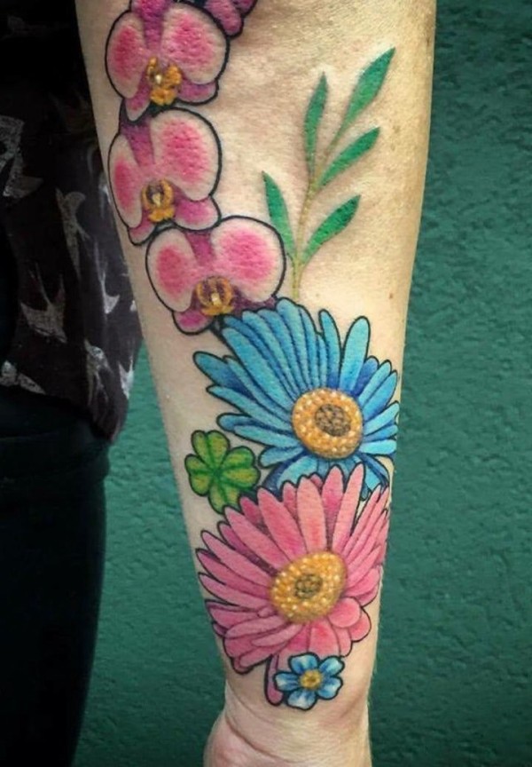 彩色花朵纹身图案 漂亮且唯美的彩色花朵纹身图案