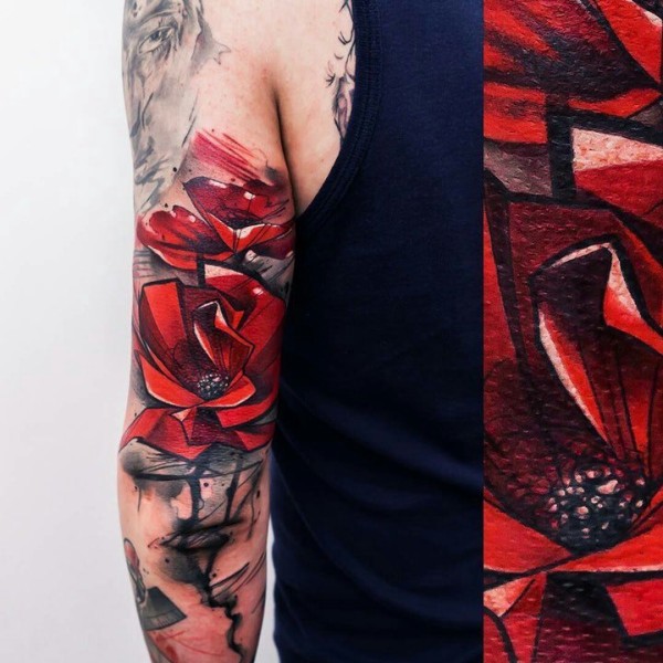罂粟花纹身图--几张红色艳丽的唯美罂粟花纹身图案作品